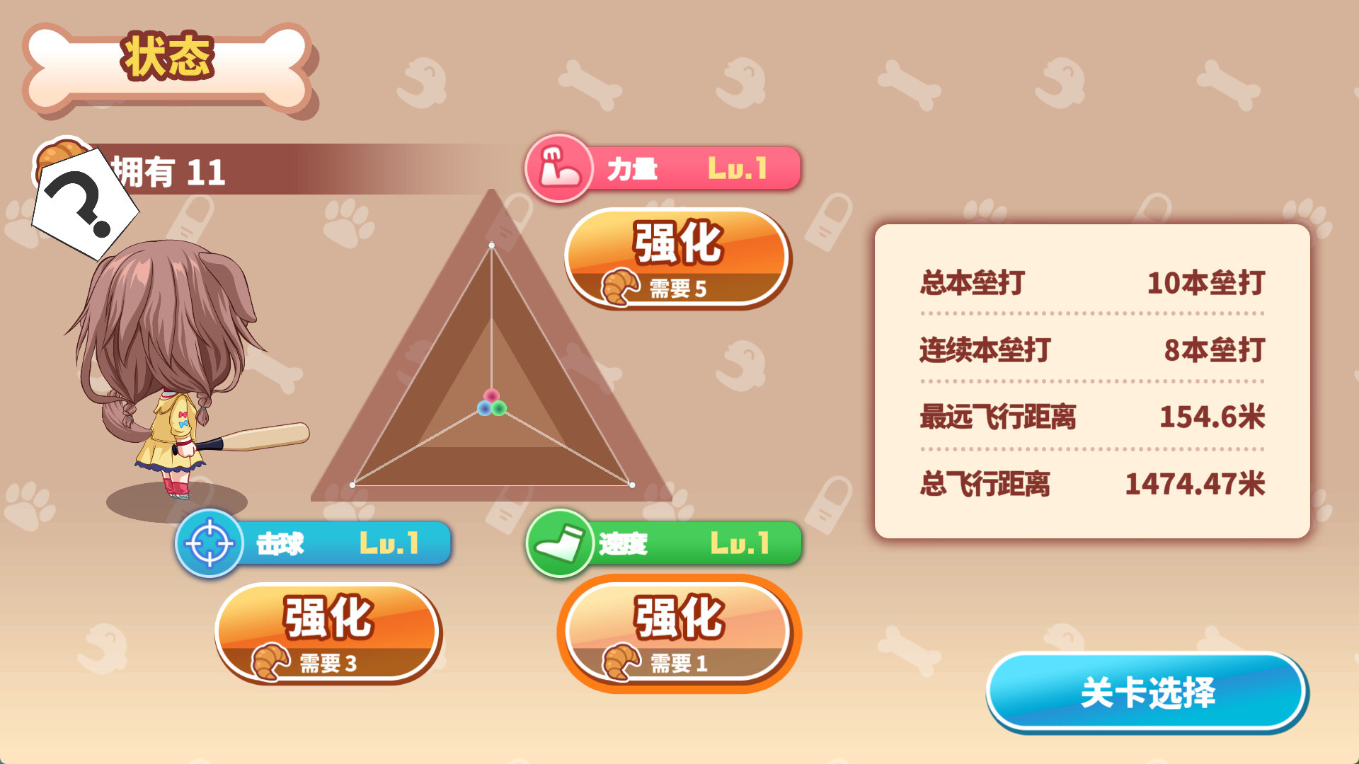 使用在各个关卡中获得的面包可以让沁音小姐变得更强!