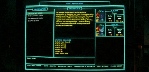 与经典的俯视战场视角不同,你在一个被屏幕和数据馈送环绕的远程指挥中心开展行动。你可以从指令列表中向部队下达命令,但直接影响战场的能力有限。Xenopurge 更侧重于预判和规划,而不是反应和操控。