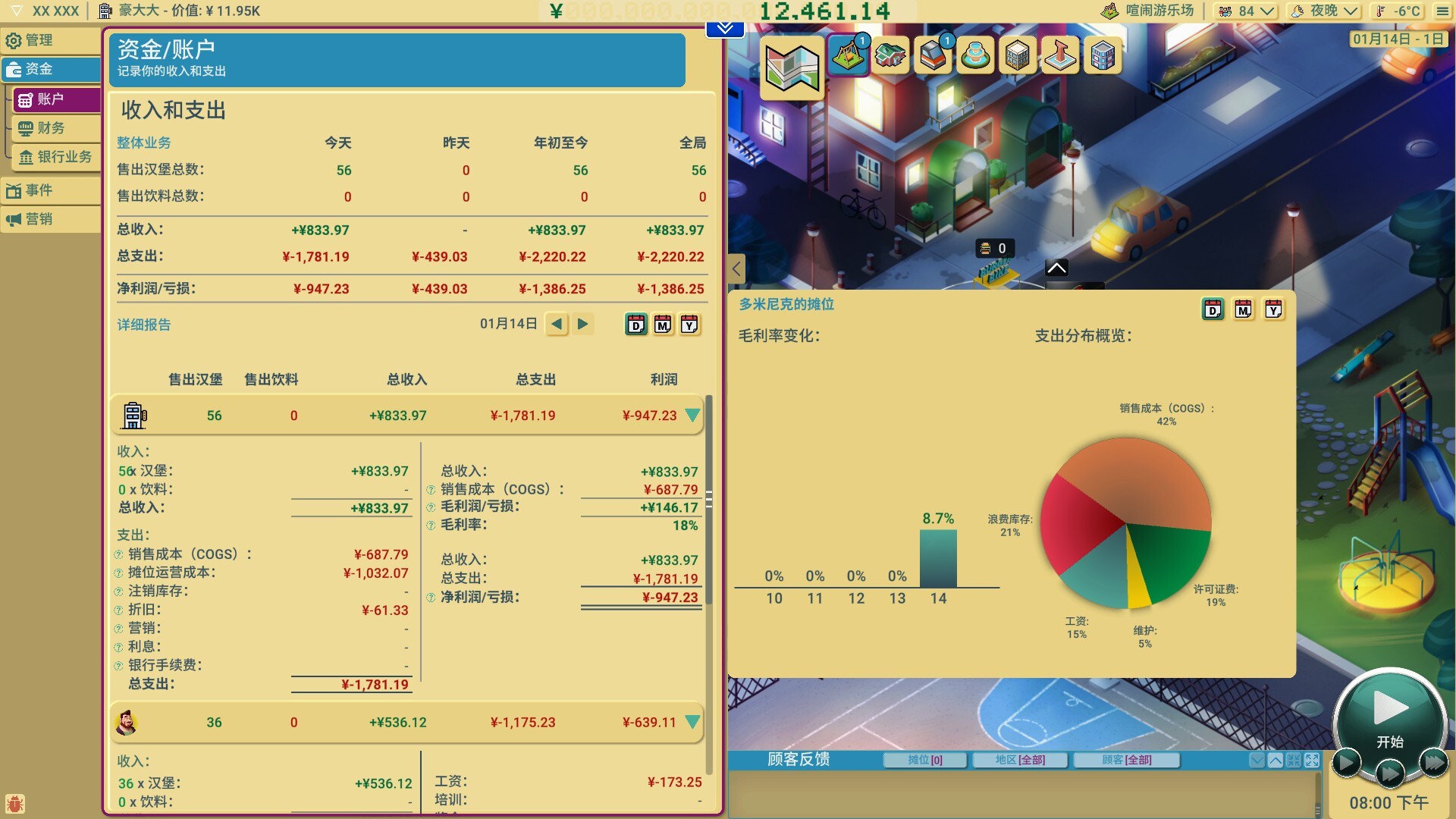 📈 轻松有趣的商业管理:管理营销、顾客评价与预算,让枯燥的运营变得轻松有趣。开启广告攻势,欣赏人气直线上升的过程。资金周转不灵?允许贷款,但银行可不是慈善机构!