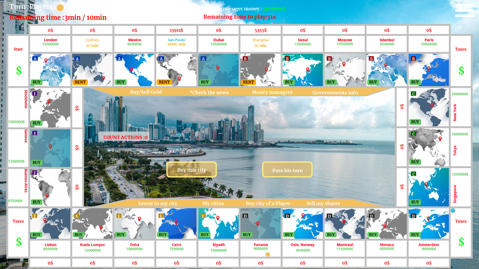 🔁 与其他参与者谈判 ——购买或出售城市和资产以占据上风。