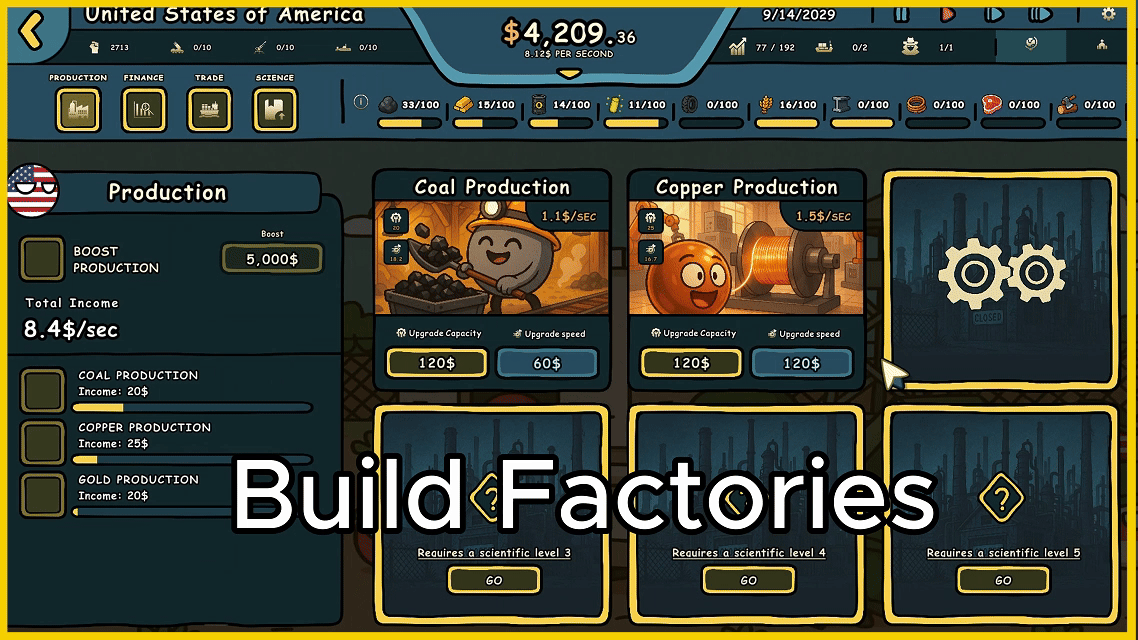 在Countryballs: Power Protocol中,时间就是金钱——字面意义上的。你的收入会随着时间不断增长。升级工业、发展贸易、管理全球资产,助你扩展版图。你控制的国家越多,经济增长越快。明智的决策将带来更大的统治力。