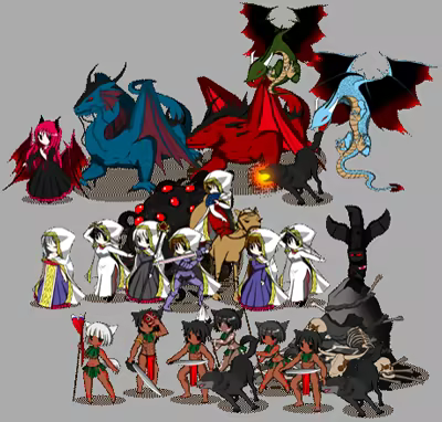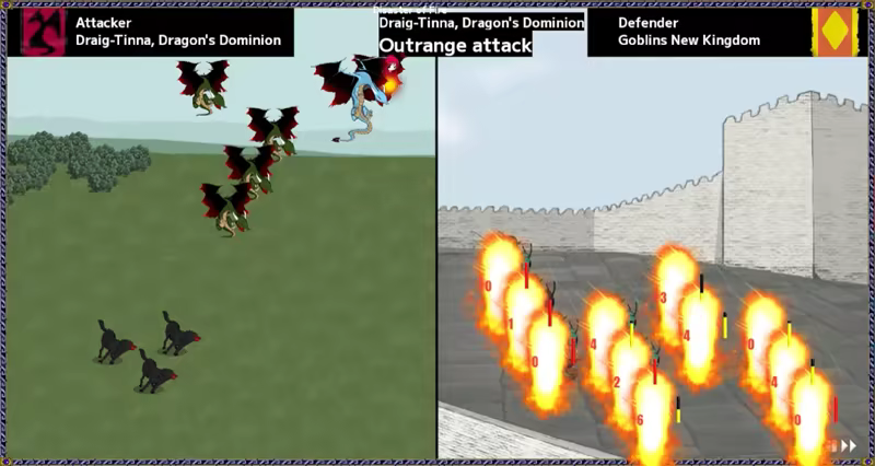 战斗自动进行,每个士兵使用战斗前预先设定的攻击方式(武器、魔法、火焰吐息等)进行战斗。