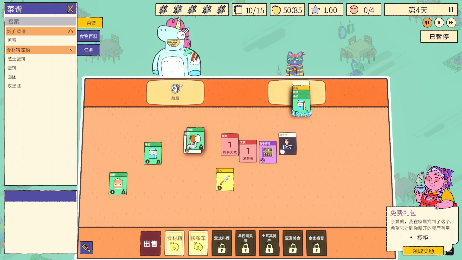 将普通小刀升级为顶级主厨餐刀,把小小的操作台变成豪华后厨!更多的卡牌、更丰富的搭配选择、更迅速的出餐速度,让你的小餐馆迅速进阶,成为万众瞩目的米其林三星殿堂!