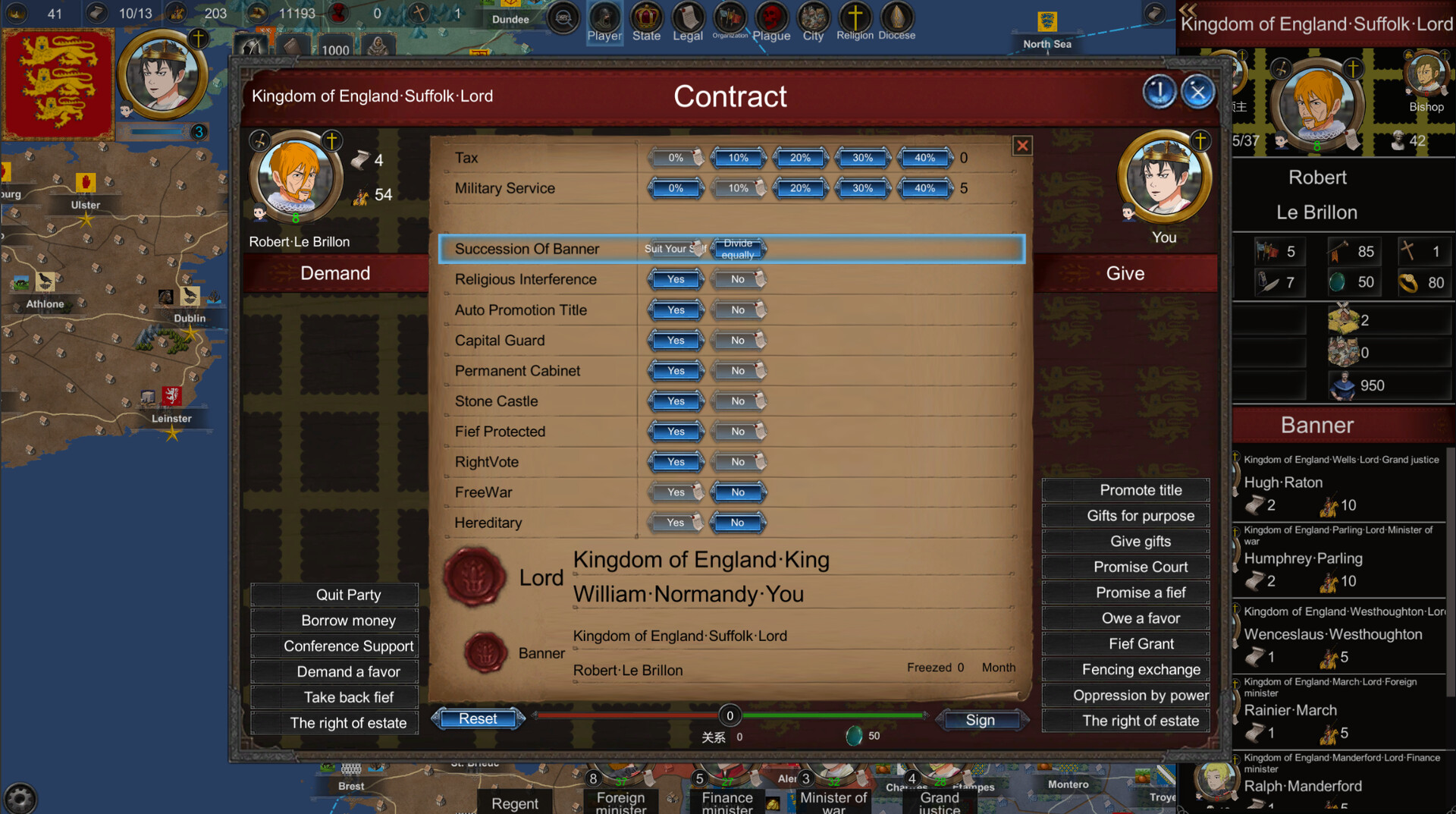 在自己或者其他领主的领地缔结条约,建设私人地产