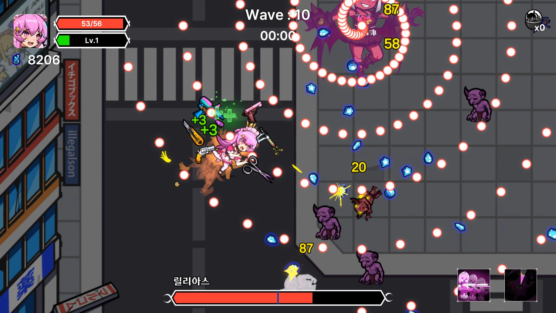 女仆战士必须在敌人源源不断的攻击中生存下来,通过选择不同武器和物品来打造自己的阵容,以击败关卡最后的强大boss,拯救地球和平。