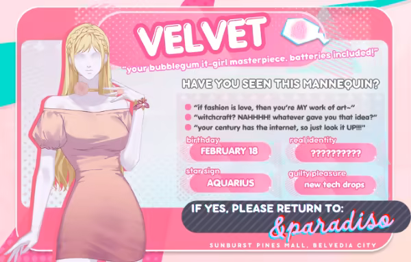 “Plastic Trick”是一部选择驱动的视觉小说,你扮演一个名叫塞雷娜的购物狂——她正在与栩栩如生的塑料人体模型进行一段痴情的浪漫,并为你的吻而战。