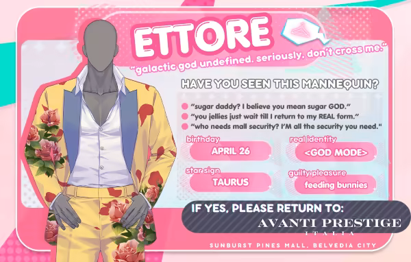 探索一个荒谬的喜剧幻想,塑料人体模型已经栩栩如生,并为了你的吻而互相争斗。这款视觉小说游戏以 GxB/GxG 浪漫为特色!