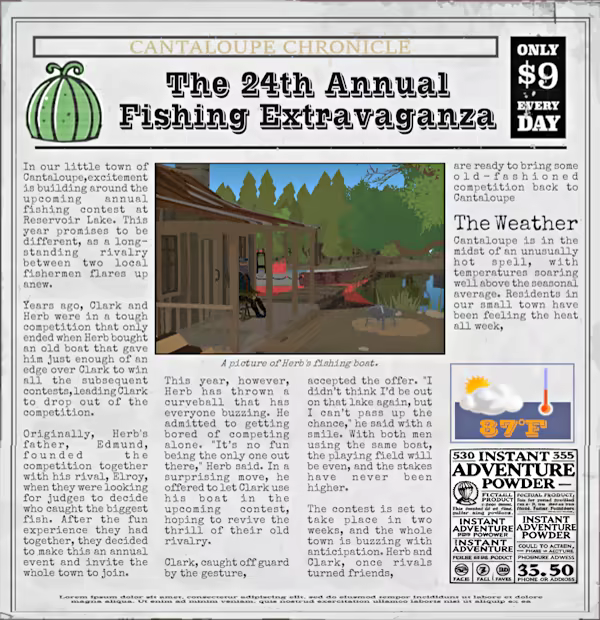 通过收集物品、与当地人交流和解决谜题来探索 Cantaloupe,以揭开一系列可供撰写的小故事。密切关注与大秘密相关的线索——这是您最终的头版文章的关键。