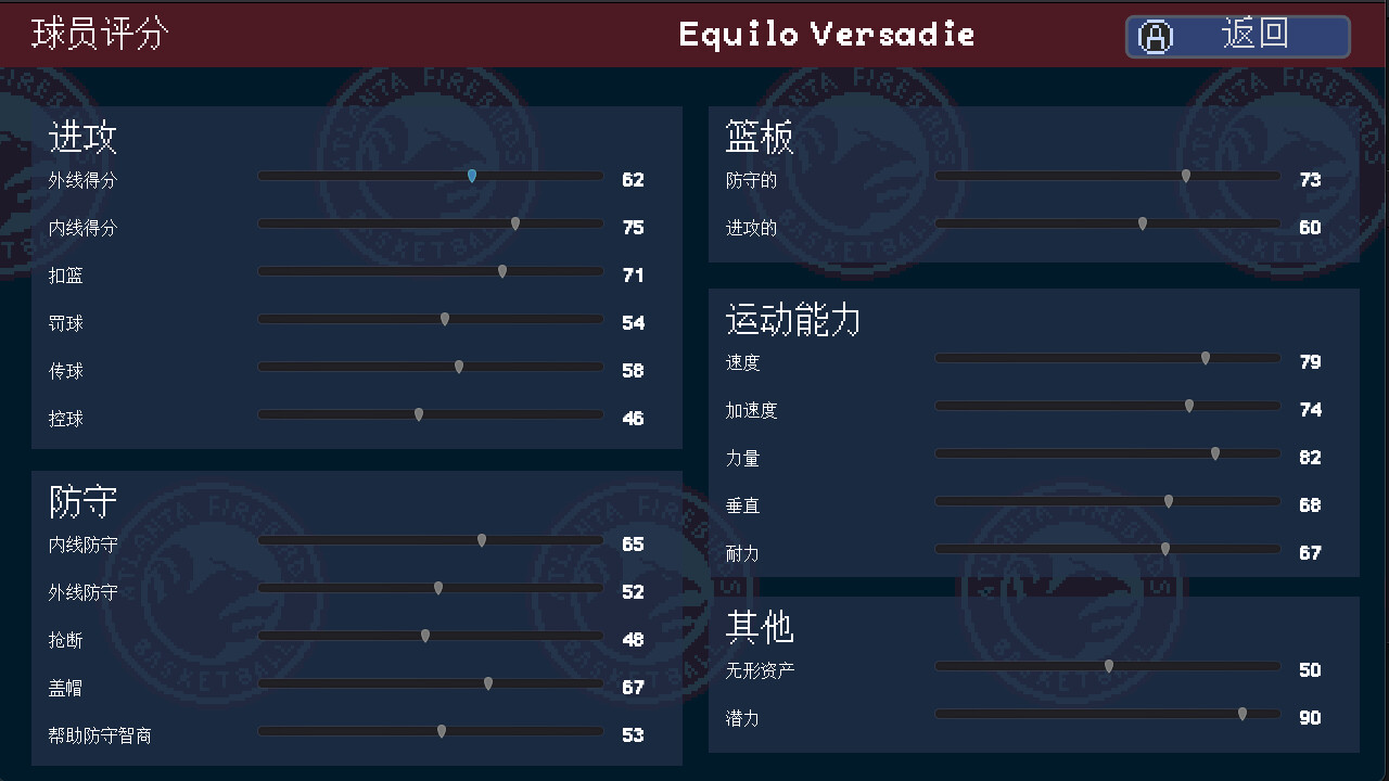 - 完整实现的特许经营模式 - 招募新球员,通过发展联盟培养他们,管理合同、交易、球员老化、球员士气等...